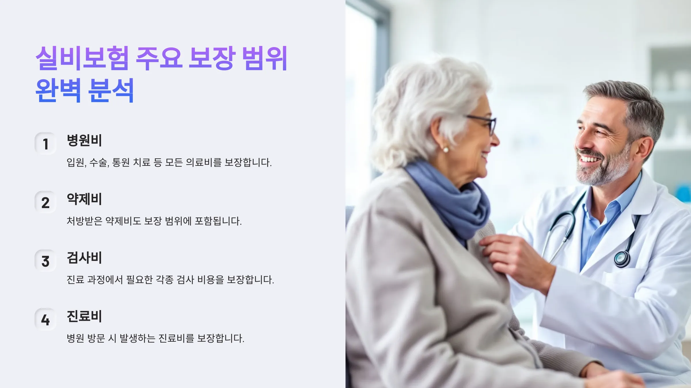 ➡ 실비보험이 있다면, 의료비 부담을 대폭 줄이고 안정적인 노후 생활을 유지할 수 있습니다.