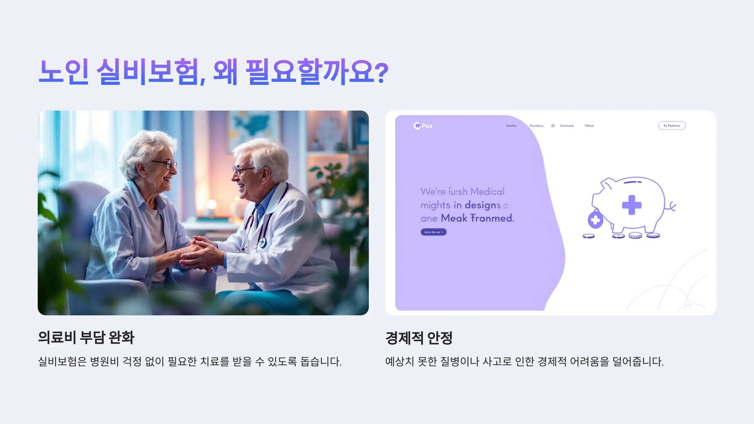 ➡ 노인 실비보험은 국민건강보험을 보완하는 역할을 하며, 고액 의료비에 대비하기 위해 필요함