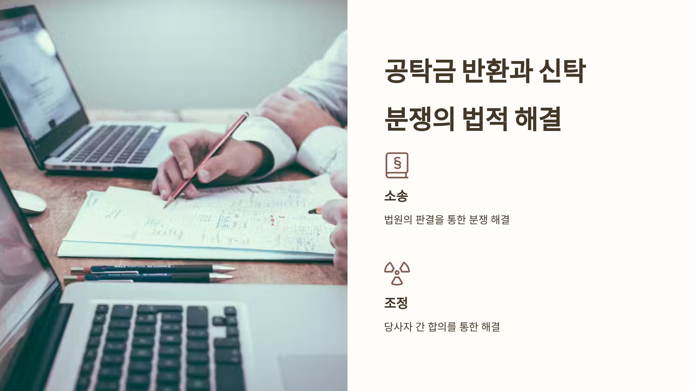 이번 글에서는 공탁금 반환 절차, 신탁 분쟁의 주요 원인, 그리고 이러한 문제를 효과적으로 해결할 수 있는 법적 접근 방법을 종합적으로 정리했어요. 복잡해 보이는 문제를 하나씩 살펴보면서 안전하고 확실한 해결책을 찾아볼게요.