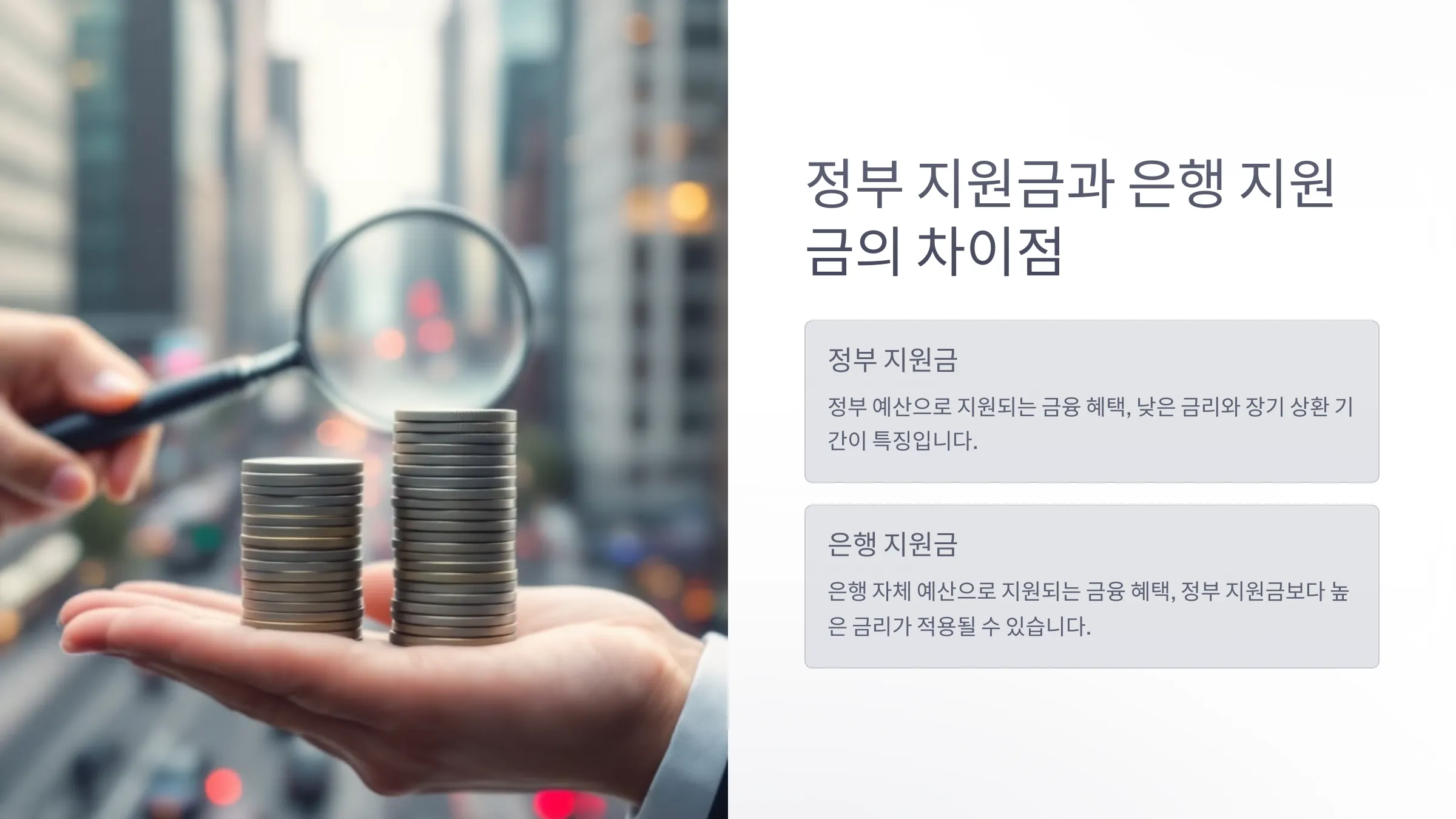 - 정부 지원금과 은행 지원금의 차이점