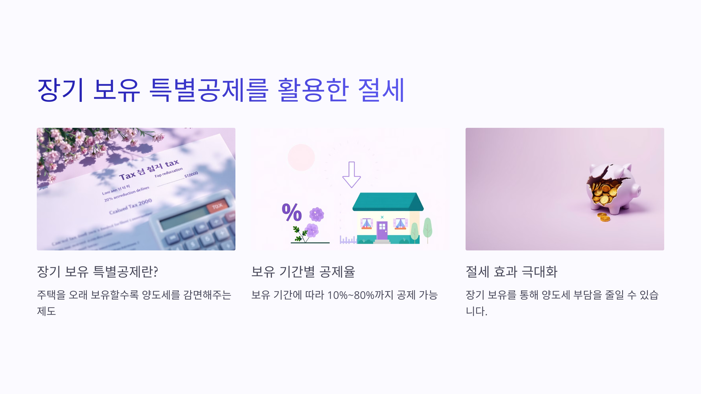 - 최대 15년 이상 보유 시 80%까지 공제 가능.