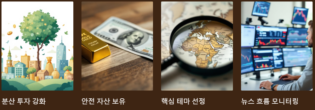 안정적인 자산(채권, 금)과 글로벌 분산 투자 전략을 병행하세요.