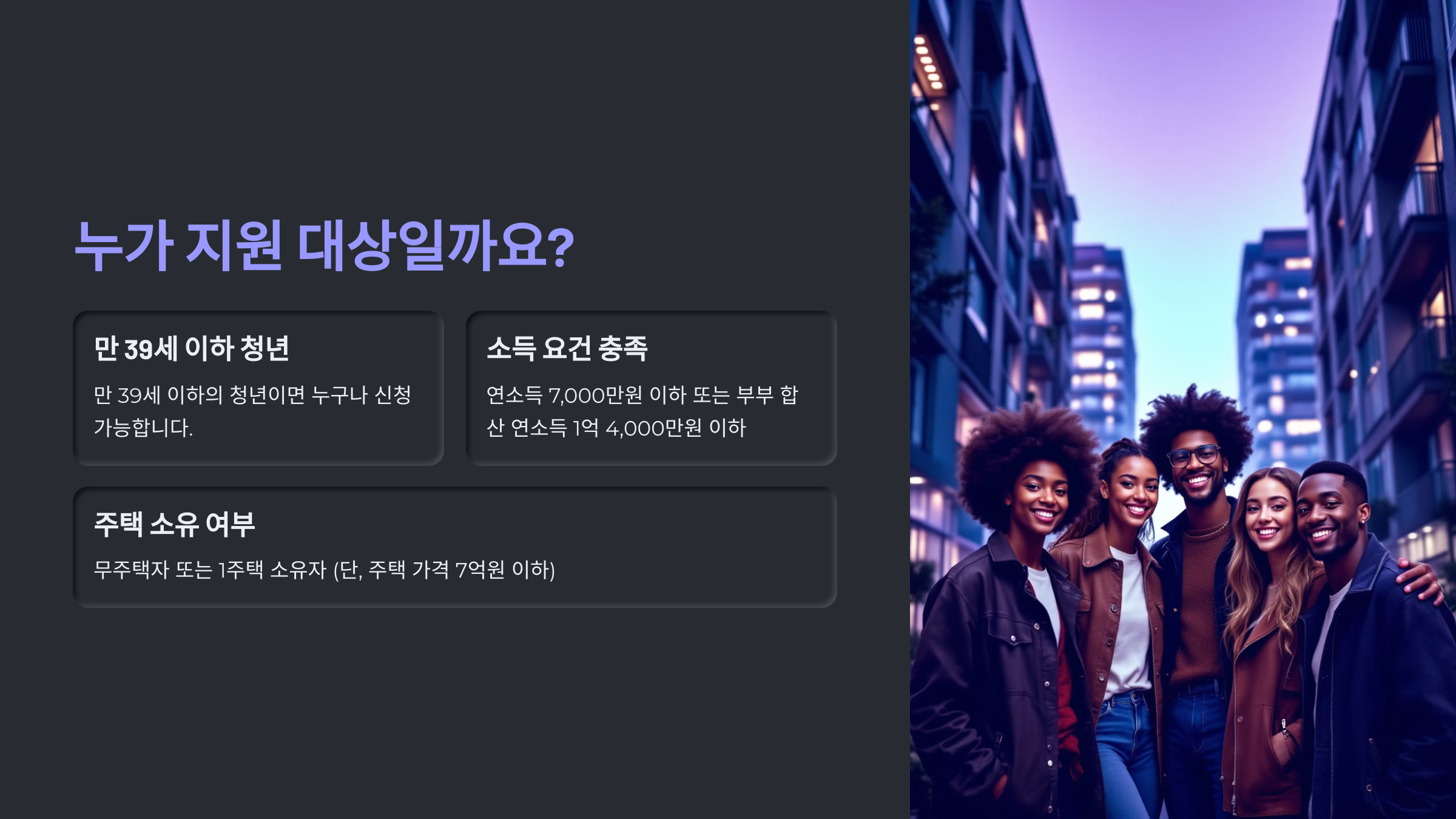 청년 월세 보증금 대출은 특정 연령 및 소득 조건을 충족하는 청년들을 대상으로 해요. 아래는 주요 지원 요건이에요: